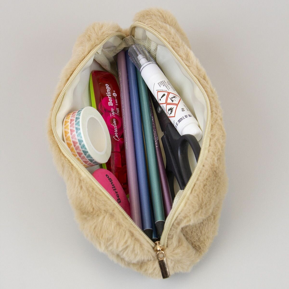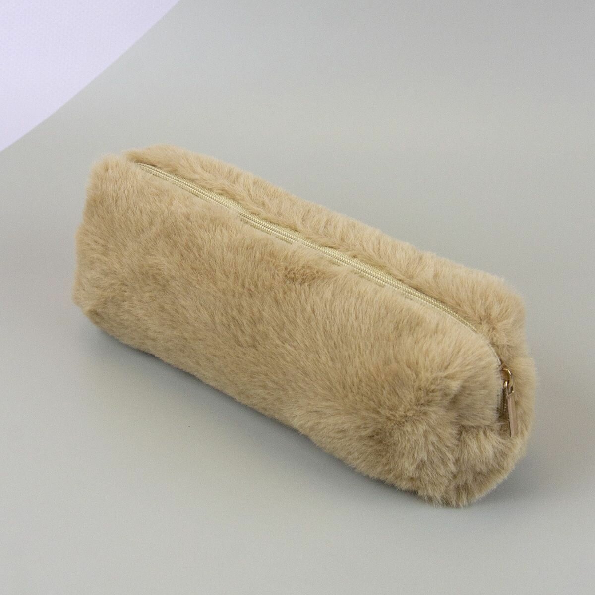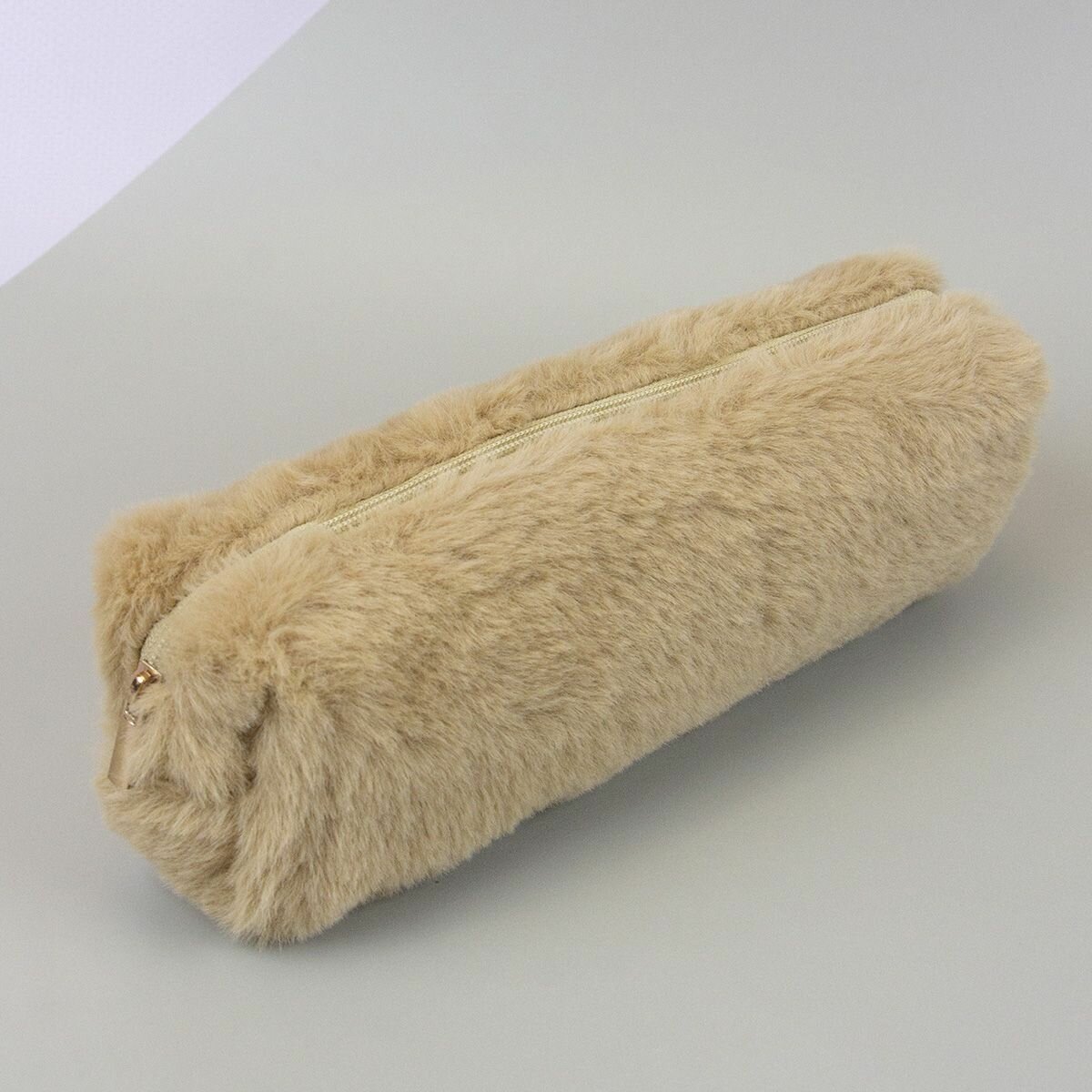 Купить Пенал плюшевый мех, пенал-косметичка однотонный - Бежевый