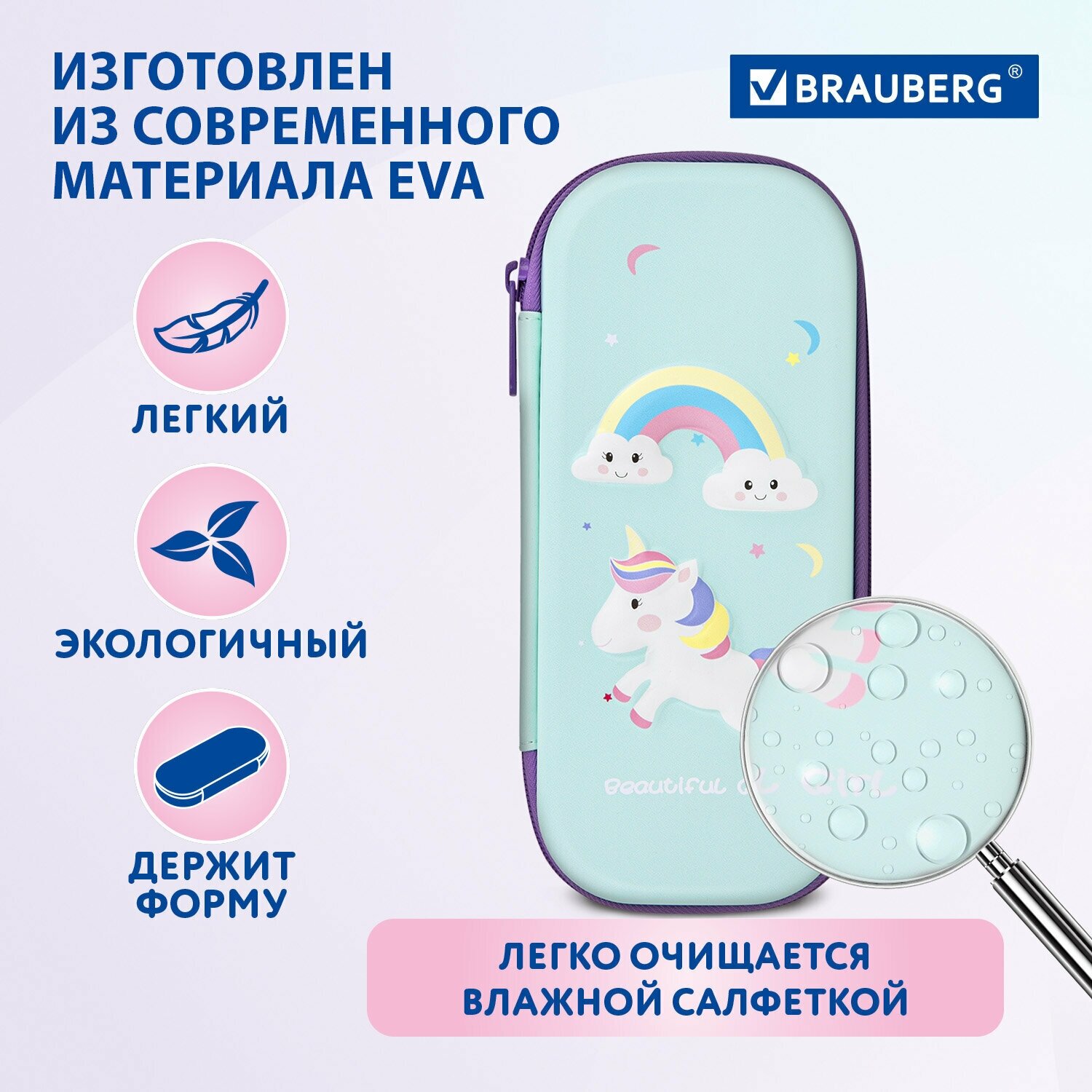Купить Пенал BRAUBERG 1 отделение 1 откидная планка EVA 3D 22х10х5 см "Unicorn", 1 шт