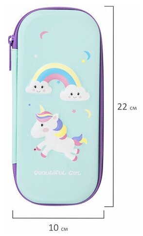 Пенал BRAUBERG 1 отделение 1 откидная планка EVA 3D 22х10х5 см "Unicorn", 1 шт