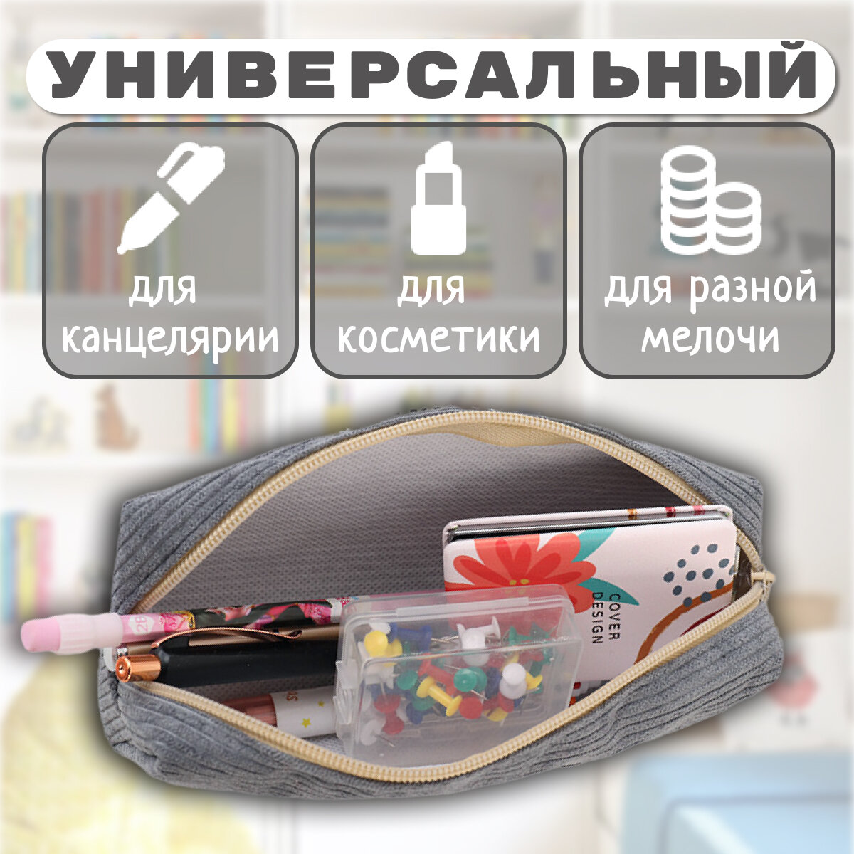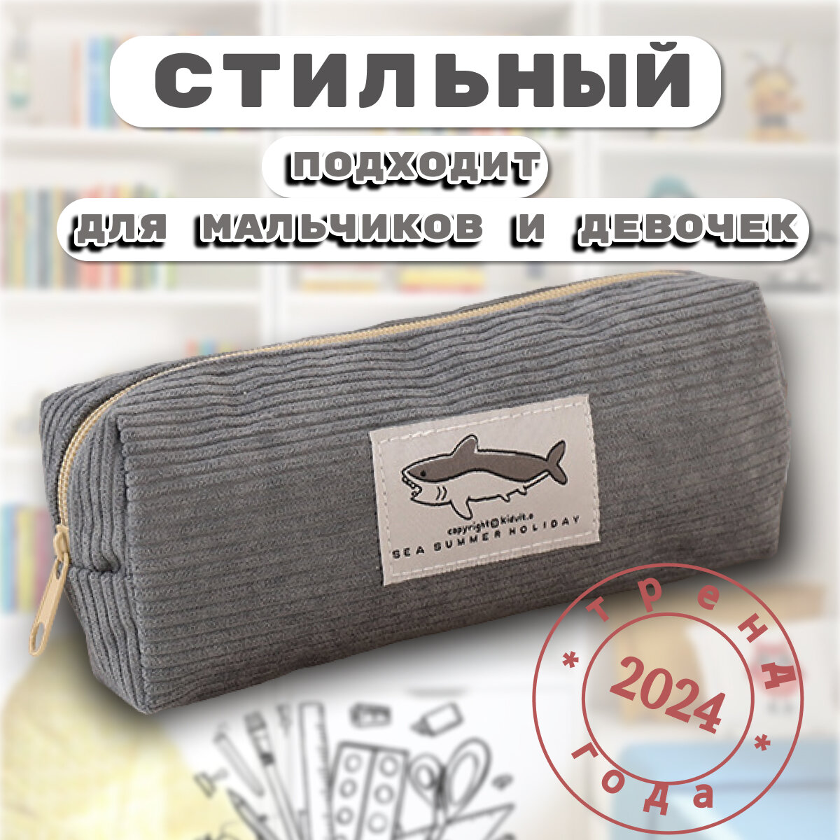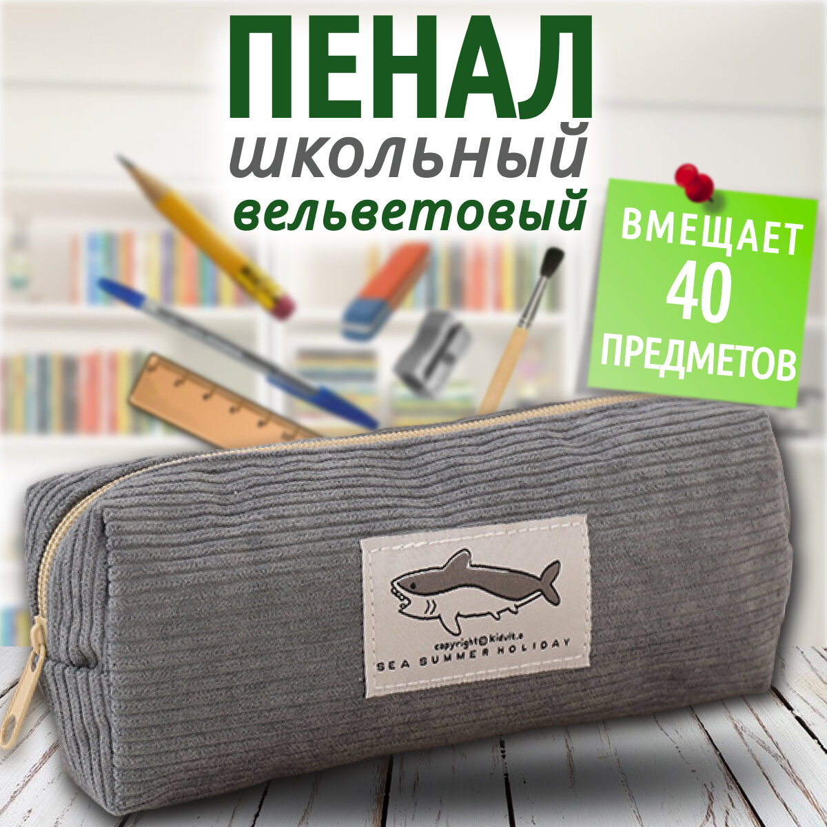 Пенал школьный вельвет серый интересное: