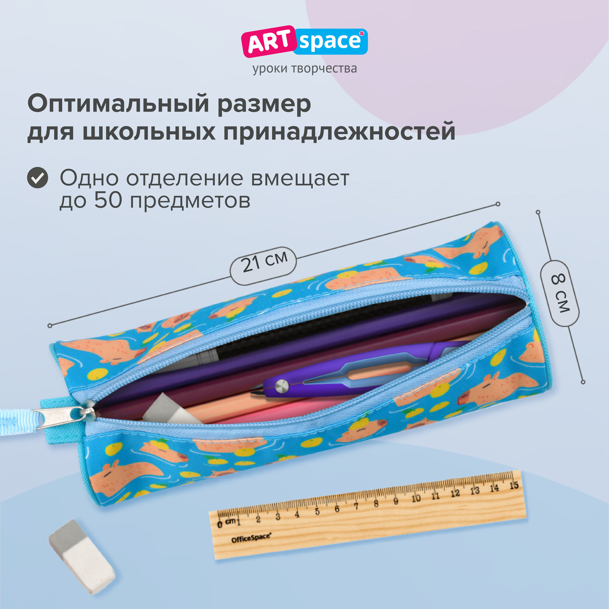 Пенал школьный ArtSpace серии Капибара, полиэстер, 1 отделение, канцелярия для девочек, мальчиков, подростков, милые товары для школы интересное: