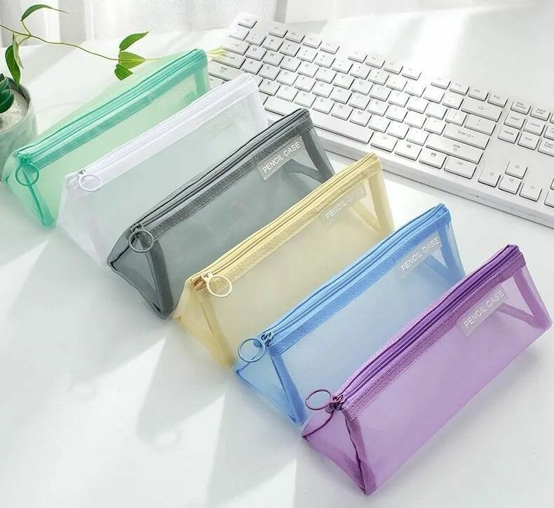 Прозрачный школьный пенал косметичка сетчатый из нейлона серый интересное: