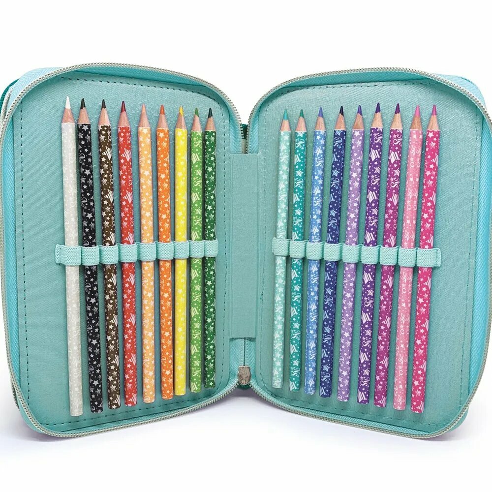 Пенал школьный для девочек Nebulous Stars, с большим наполнением наборов маркеров, карандашей