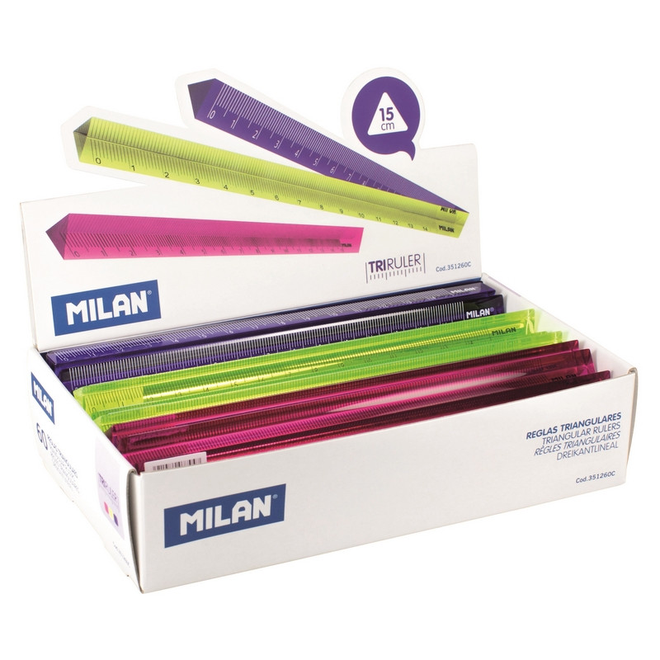 Купить Milan Линейка трехгранная 15см Milan, пластик, цветассорти:синий,зеленый,розовый