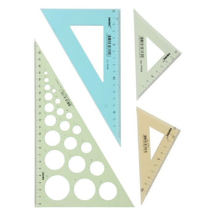 Набор треугольников 4 шт. Calligrata катет 9/12/20/25 см, с окружностями, прозрач., цветные 1034523 интересное: