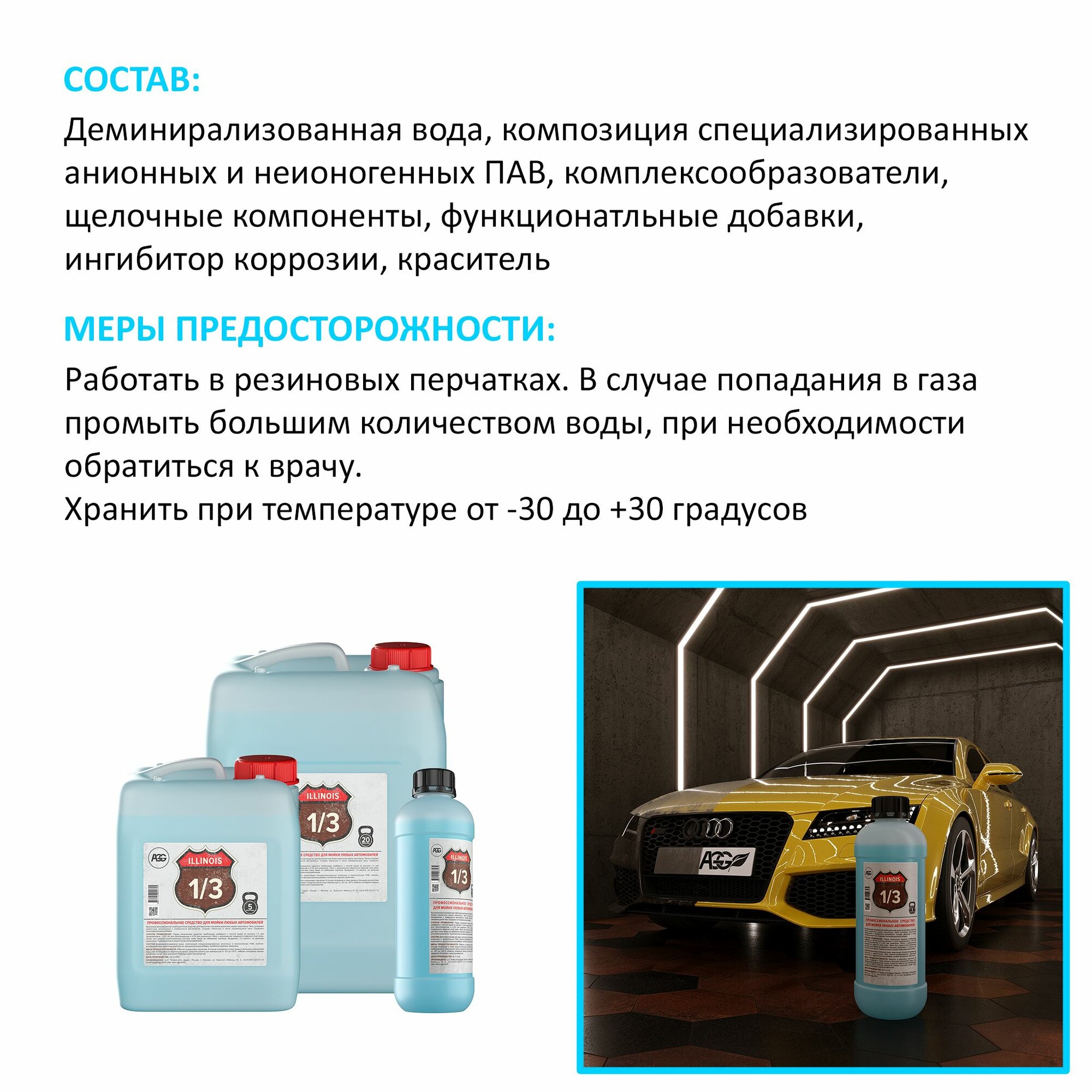 Автошампунь для бесконтактной мойки, AGG ILLINOIS 1/3 , 1кг. интересное: