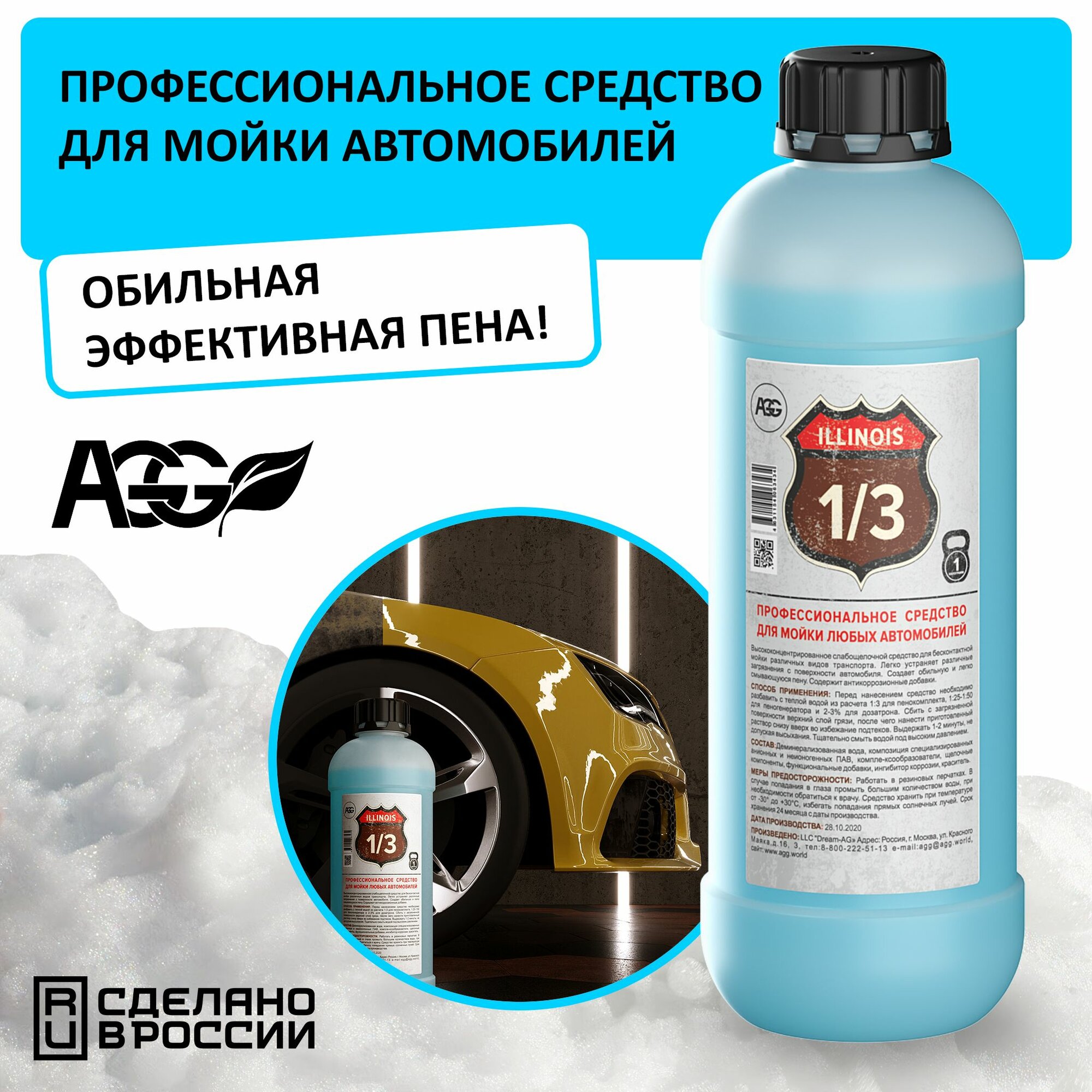 Купить Автошампунь для бесконтактной мойки, AGG ILLINOIS 1/3 , 1кг.