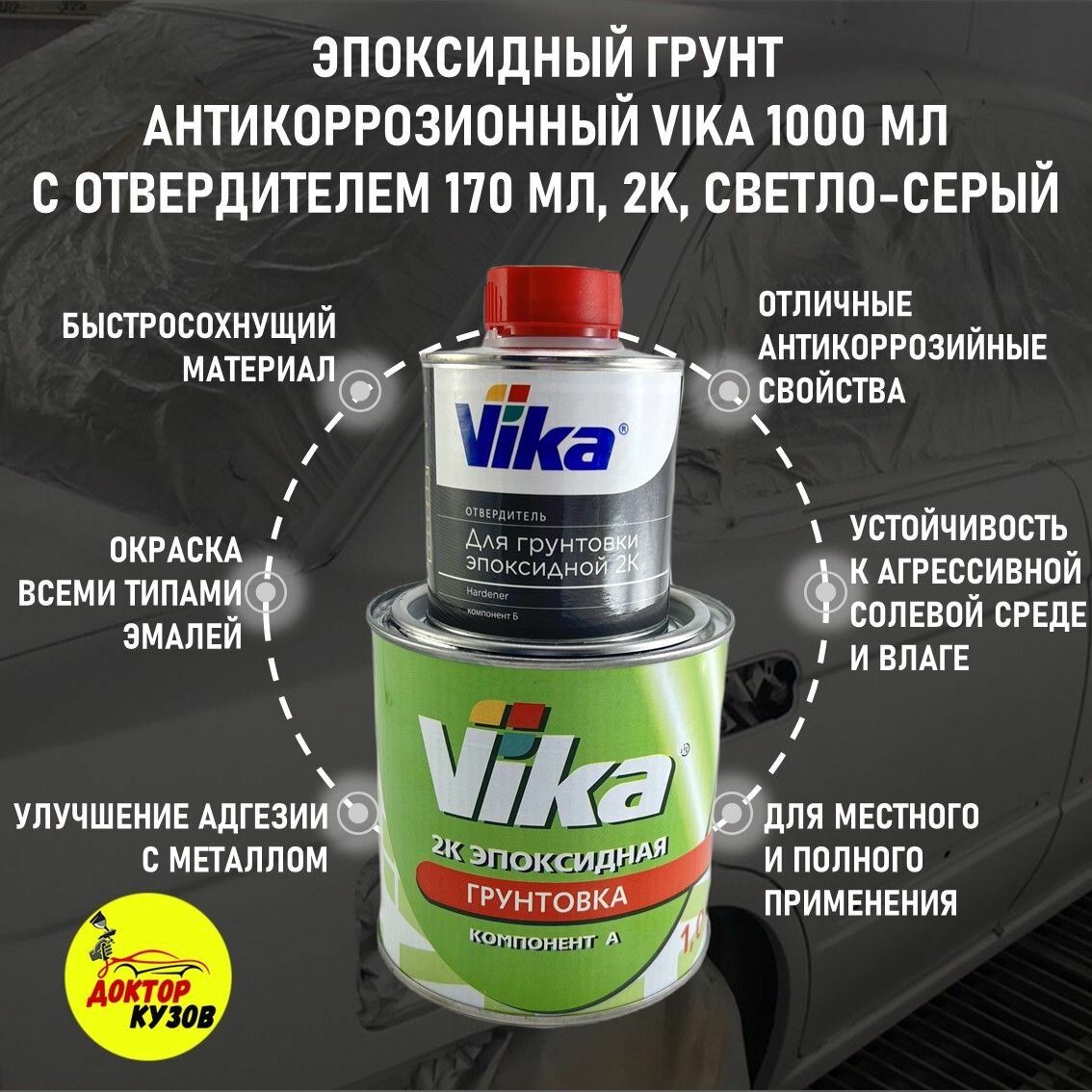 Эпоксидный грунт для авто 1000 мл VIKA с отвердителем 170 мл светло-серый / Грунтовка (адгезионная) автомобильная 209399 интересное: