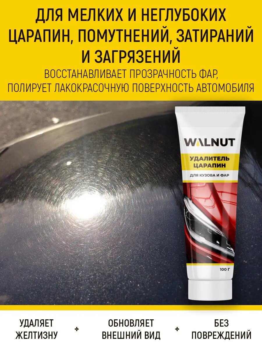 Удалитель царапин WALNUT, для кузова и фар авто, мелкоабразивная паста, 100г