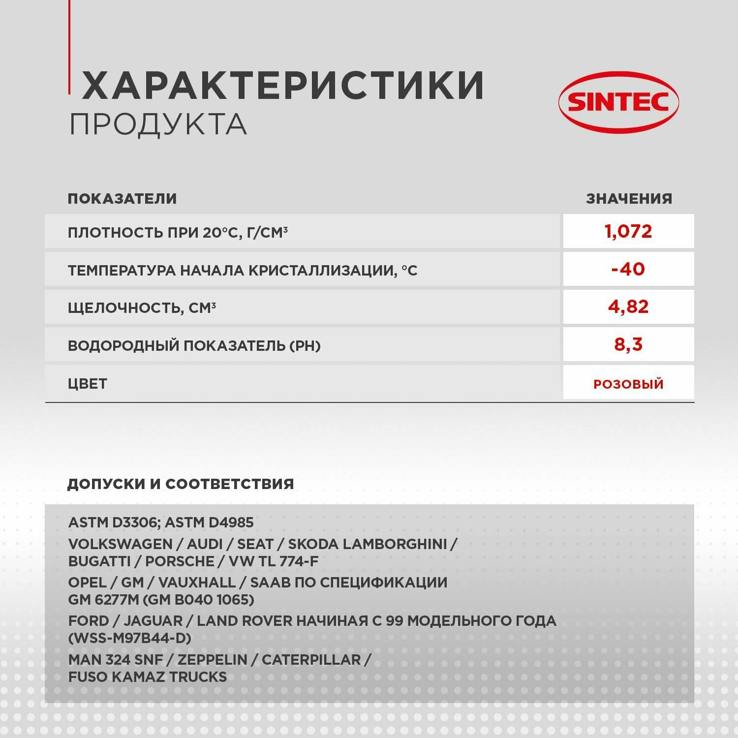 SINTEC PREMIUM G12+ -40 карбоксилатный антифриз 5кг для двигателя автомобиля, охлаждающая жидкость синтек в авто, розовый, готовый к применению интересное: