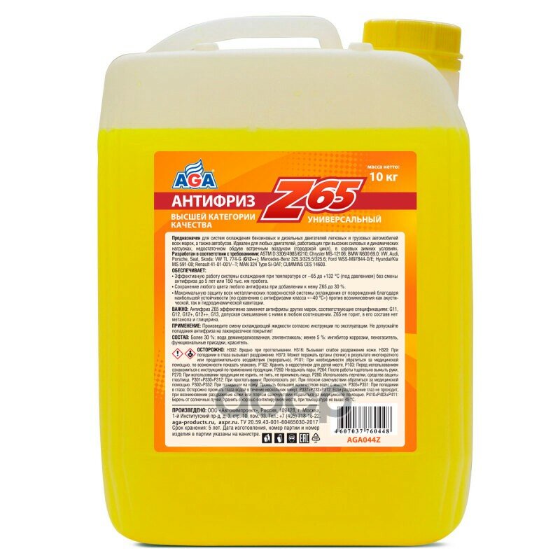 Купить Aga Антифриз, Готовый К Применению, Желтый, -65°C (10Kg) AGA арт. AGA044Z