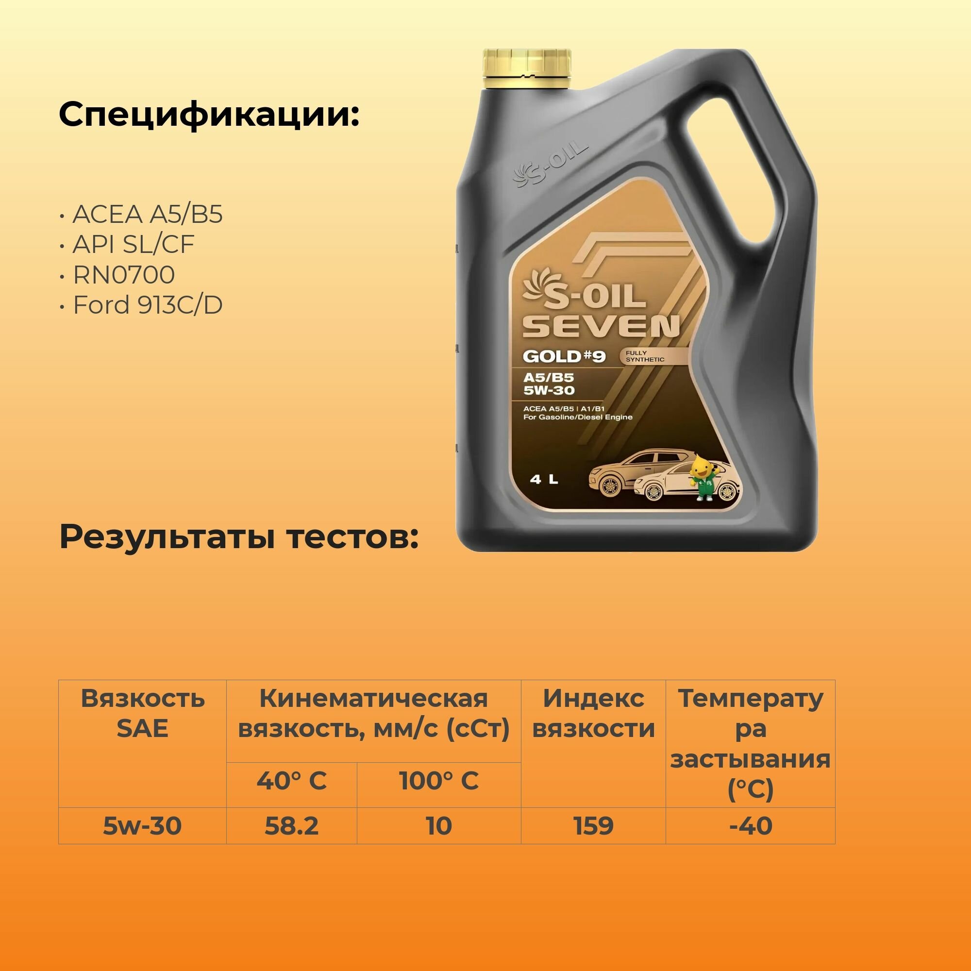 S-Oil Масло Моторное S-Oil Gold #9 5w-30 Cf/Sl A5/B5 Синтетическое 4 Л интересное: