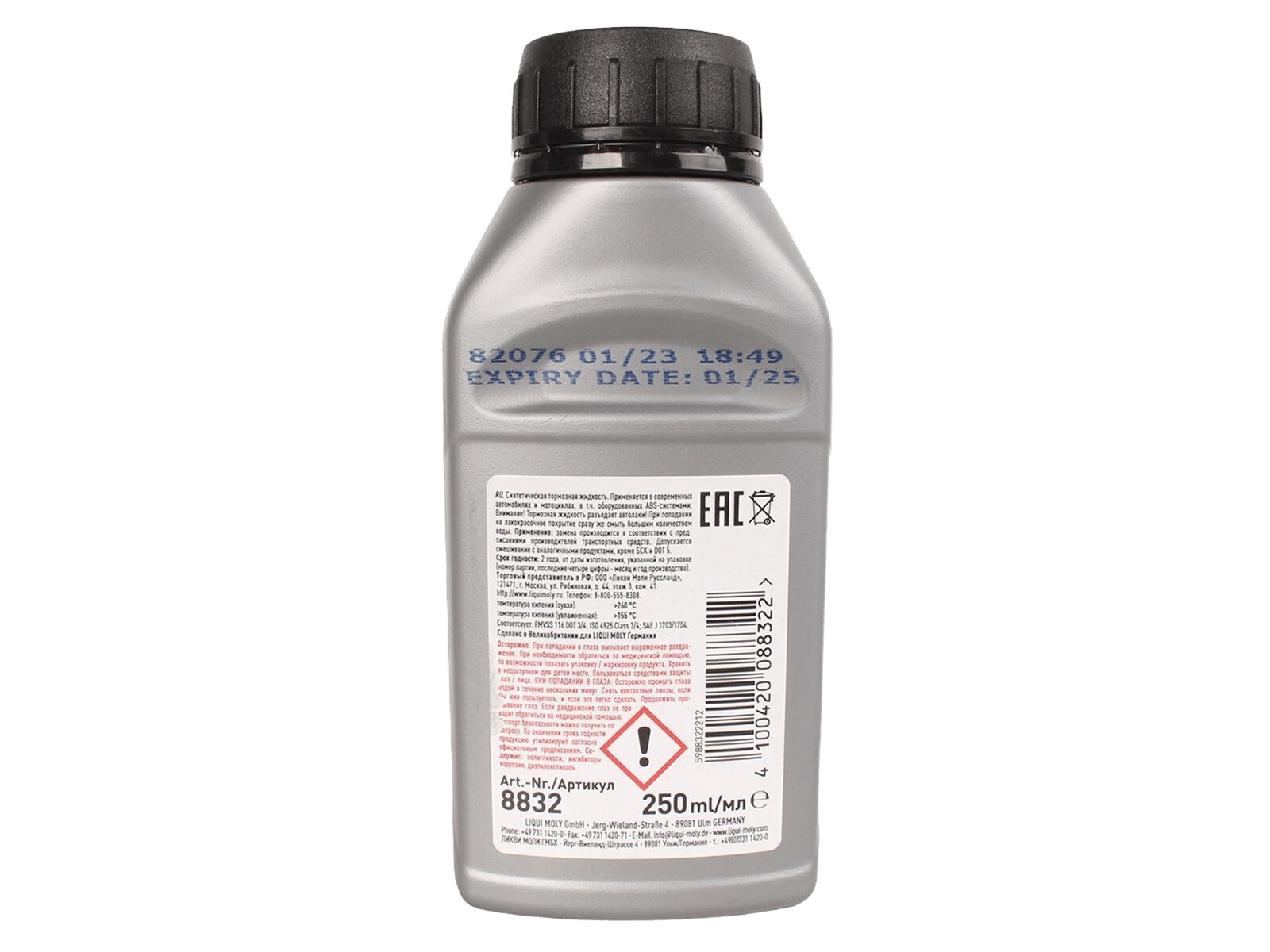 Купить LIQUI MOLY 8832 Жидкость тормозная LIQUI MOLY Bremsflussigkeit DOT4 0,25 л 8832/21155