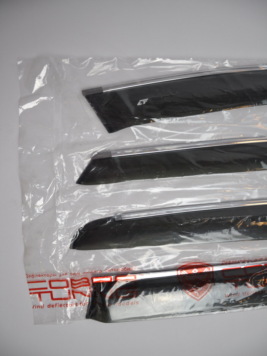Дефлекторы боковых окон для Kia Carnival 3 (Киа Карнавал) 2014-2020, ветровики с хром молдингом, Cobra Tuning