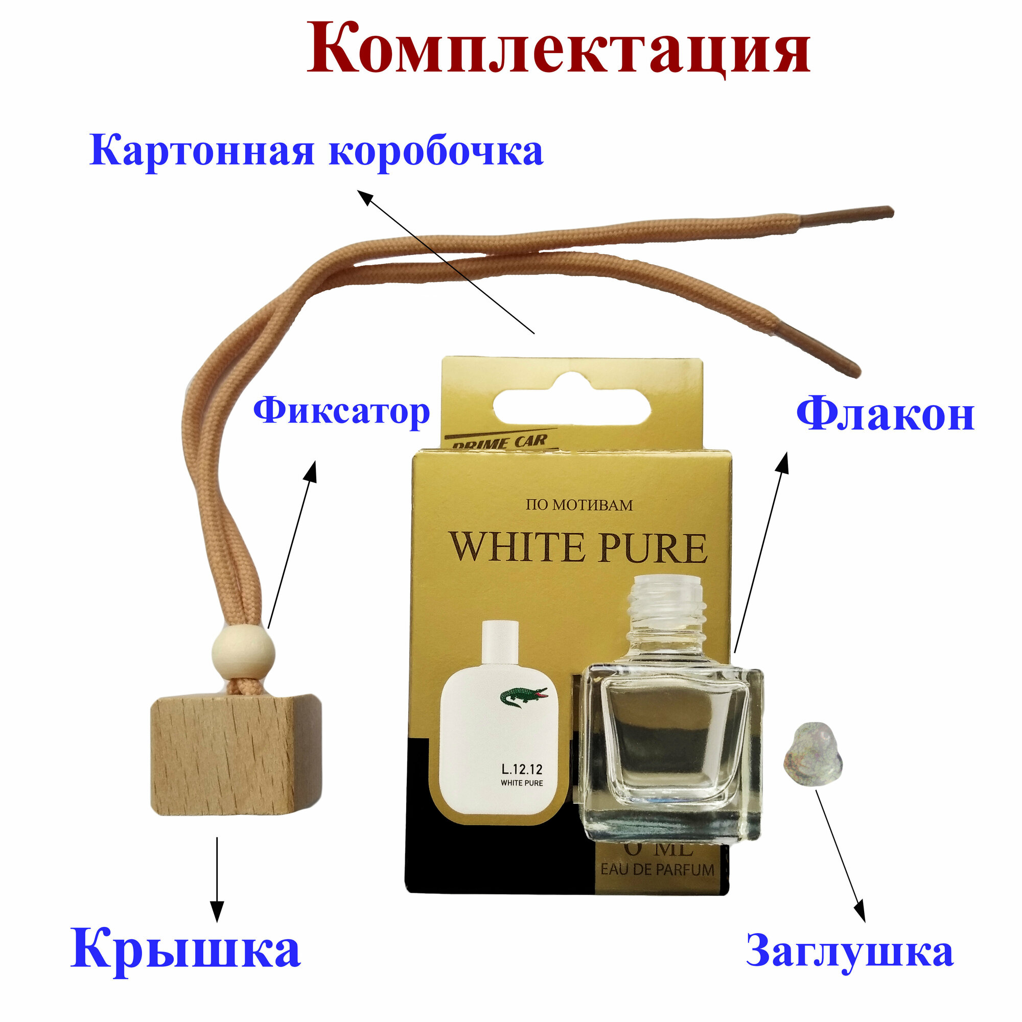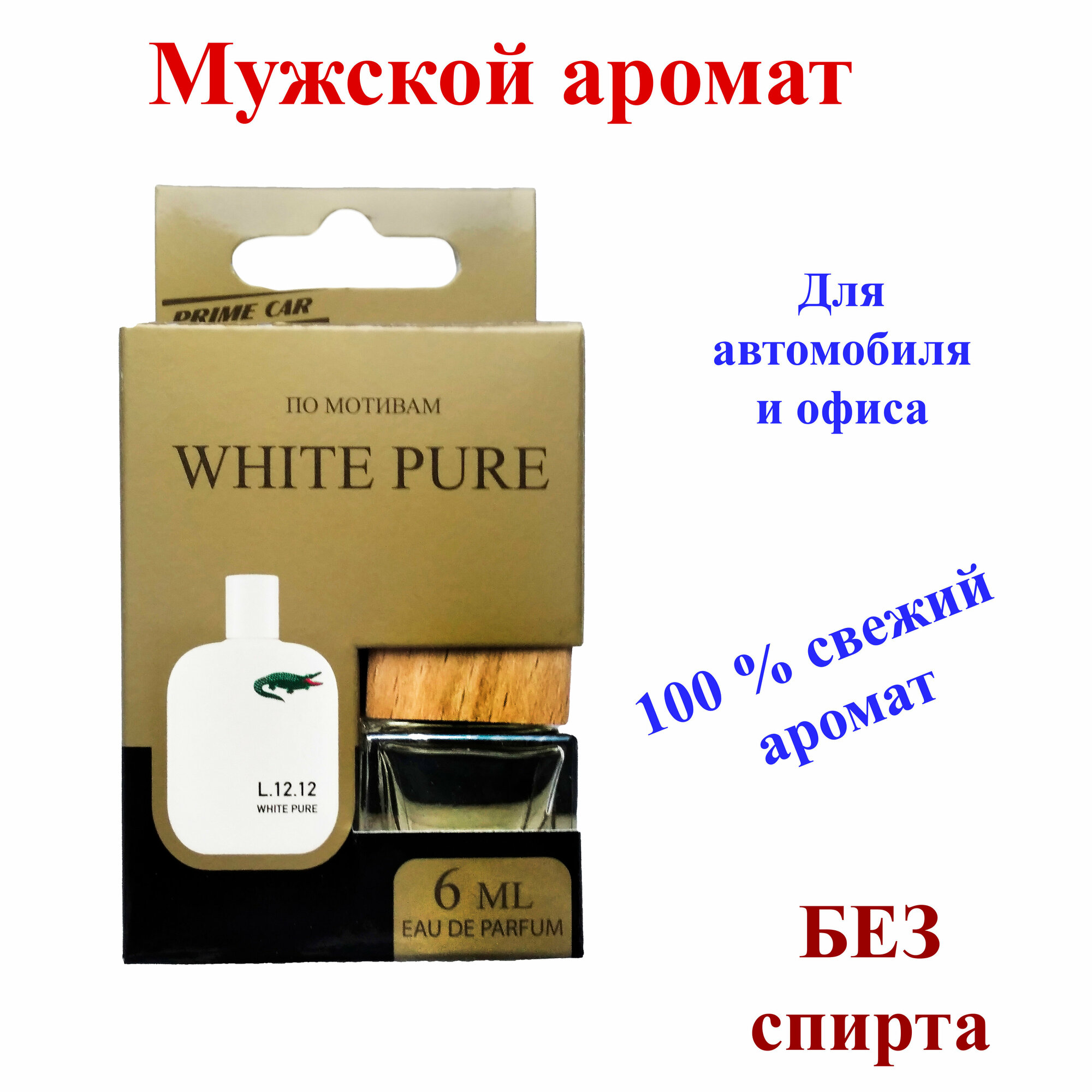 Ароматизатор для автомобиля и дома с деревянной крышкой и шнурком"PRIME CAR - Вайт Пур (WHITE PURE)" / Lacoste L.12.12 мужской автопарфюм
