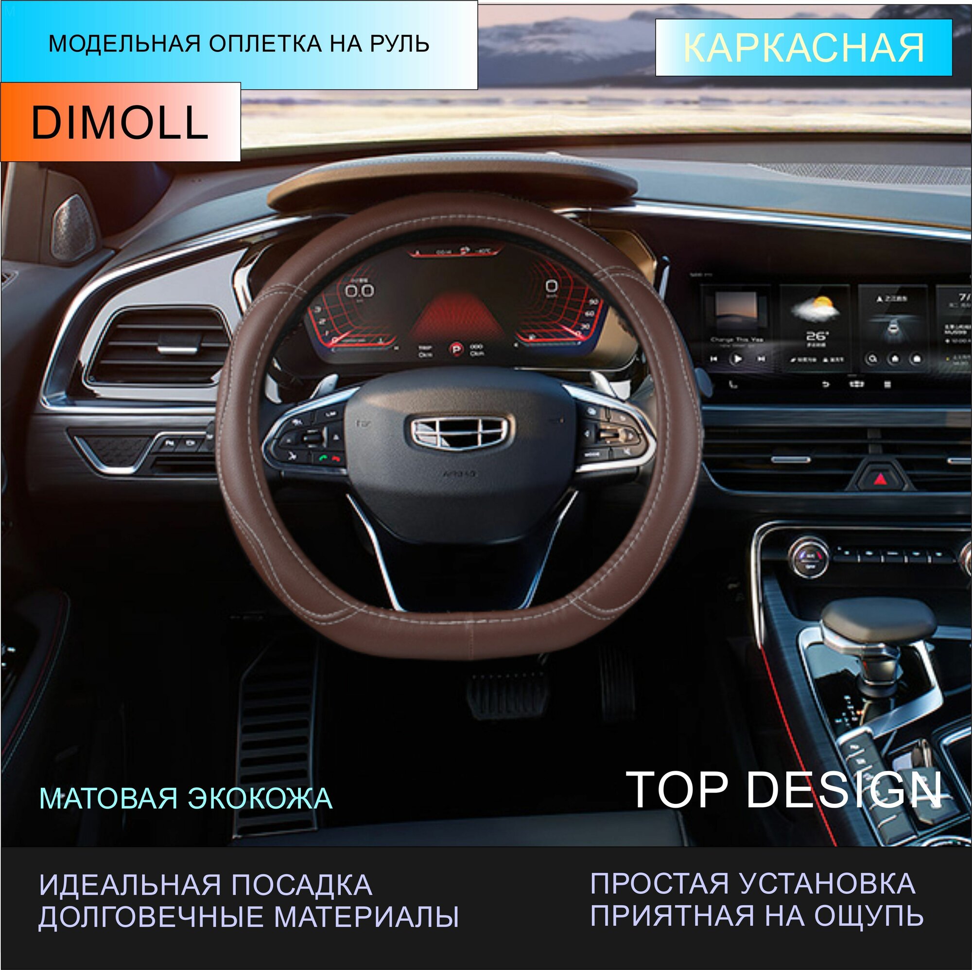 Купить Оплетка (чехол) на D образный руль, скошенный снизу каркасная Geely Atlas 2016 - н.в. экокожа, коричневая