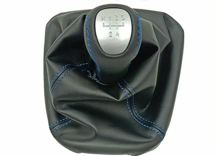 Ручка КПП с чехлом на ВАЗ-2113, 2114, 2115 (Лада, Lada),(Самара,Samara) ручка коробки переключения передач, черный c синей строчкой