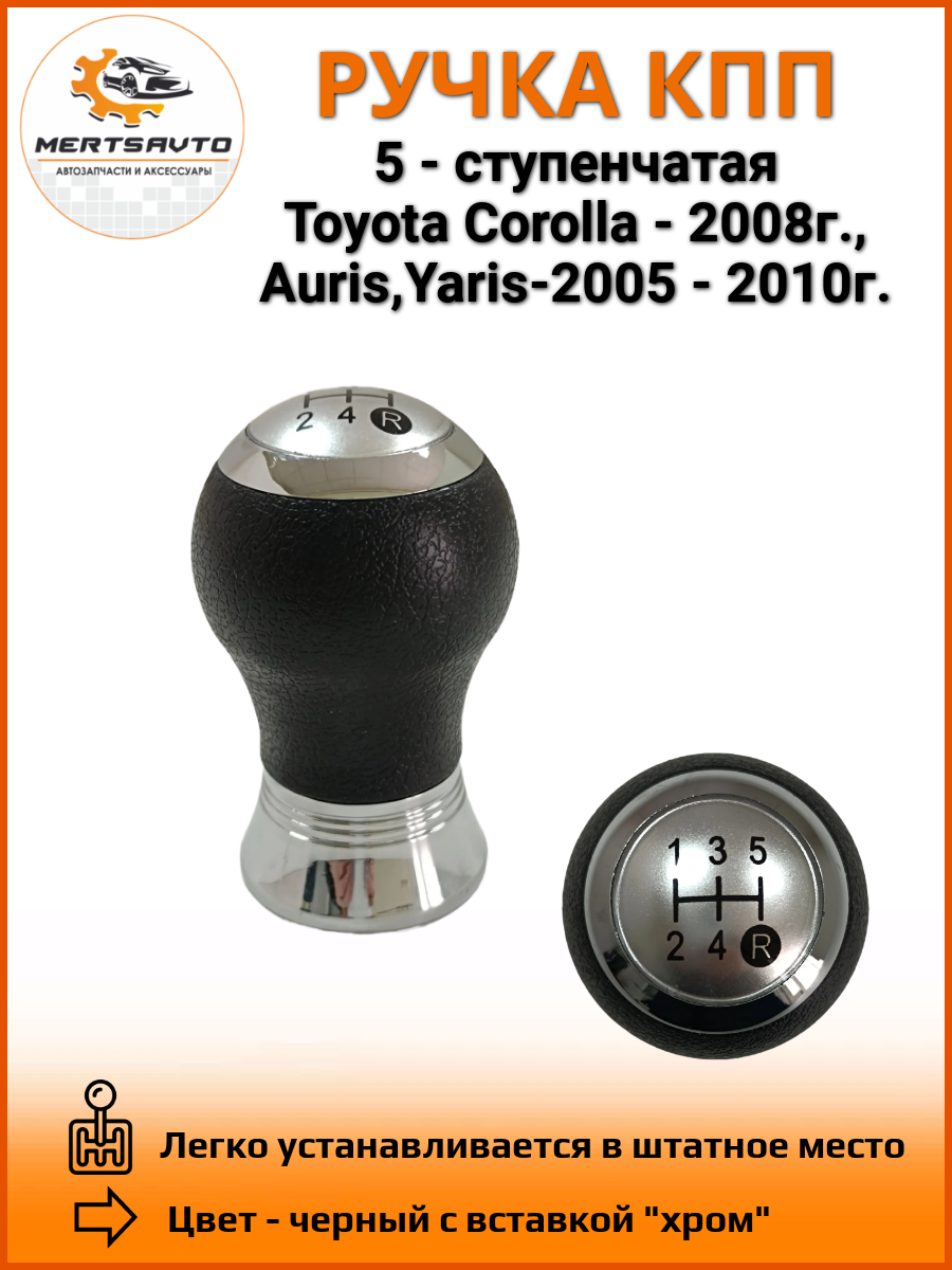 Ручка КПП Mertsavto, для Toyota Corolla/Yaris/Auris, резьбовое крепление, пластик, 5 передач, черный вставка серебро
