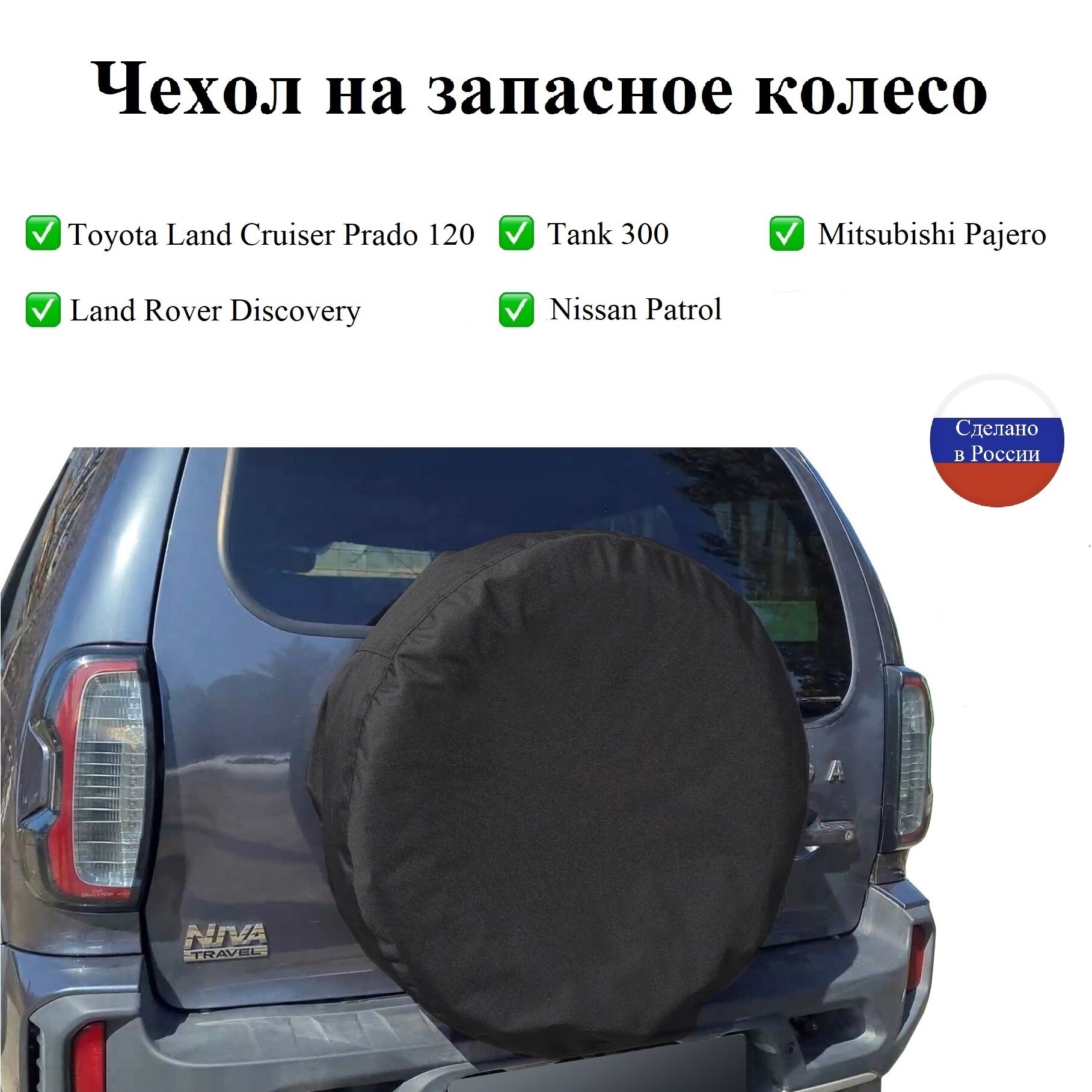 Купить Чехол для запасного колеса диаметром 76-78 см, R 17 18 19 для автомобиля Toyota Prado 120 Тойота Прадо 120, Танк 300, Mitsubishi Pajero, Nissan Patrol, Land Rover Discovery, черный 1 шт