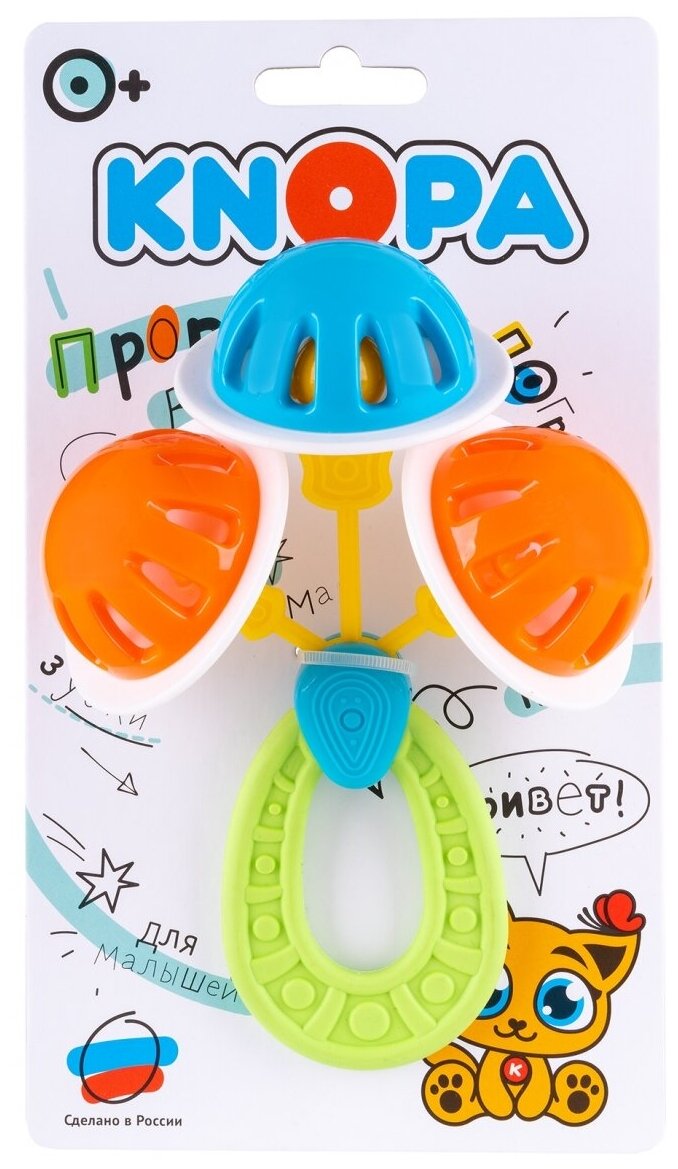 | Отзыв: | Малышу очень нравится погремушка+прорезыватель. Пользуемся несколько месяцев, не надоедает. |