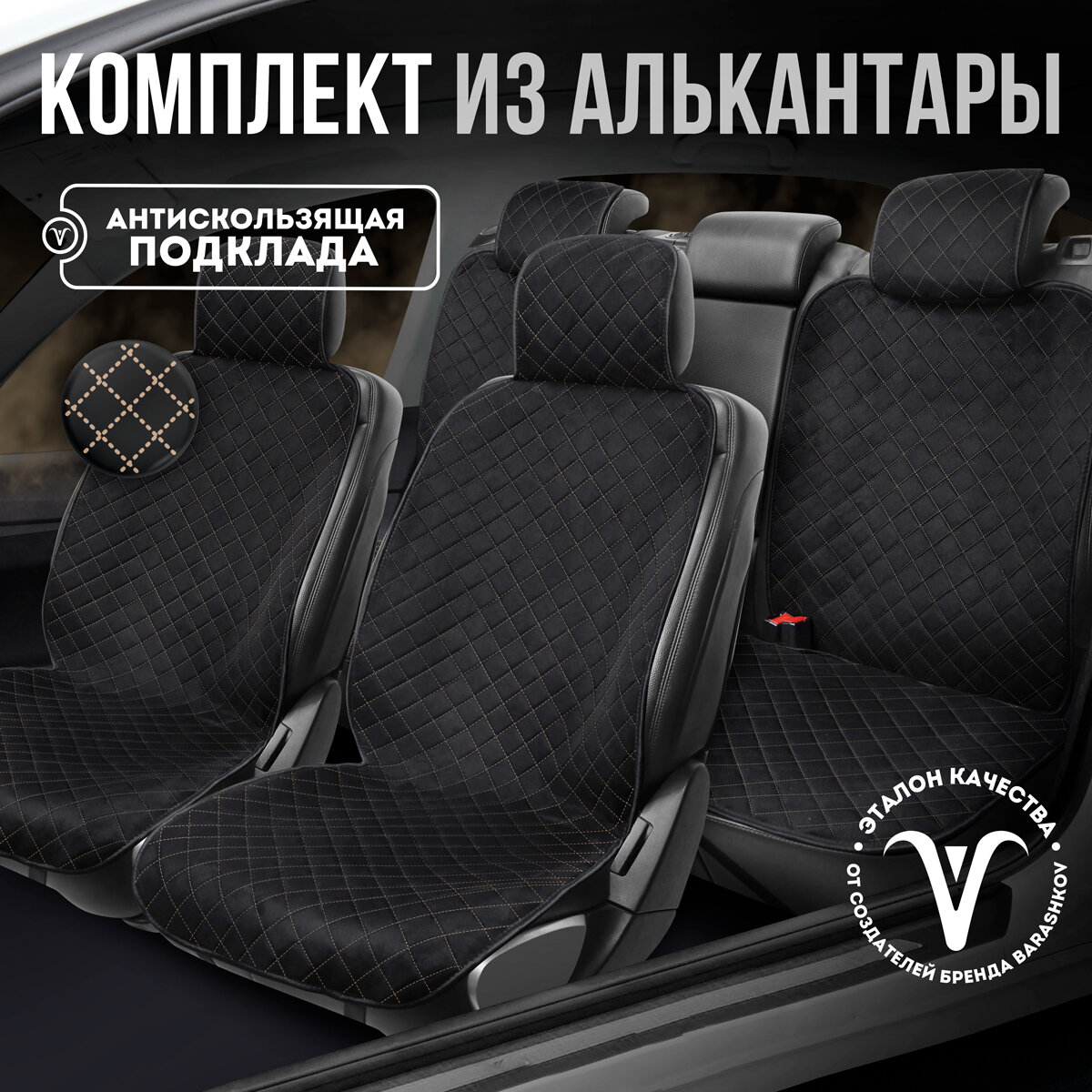 Купить Carcape/ Накидки чехлы на весь салон автомобиля из алькантары. Полный комплект накидок. Модель SOFIA PK. Черный, бежевая нить