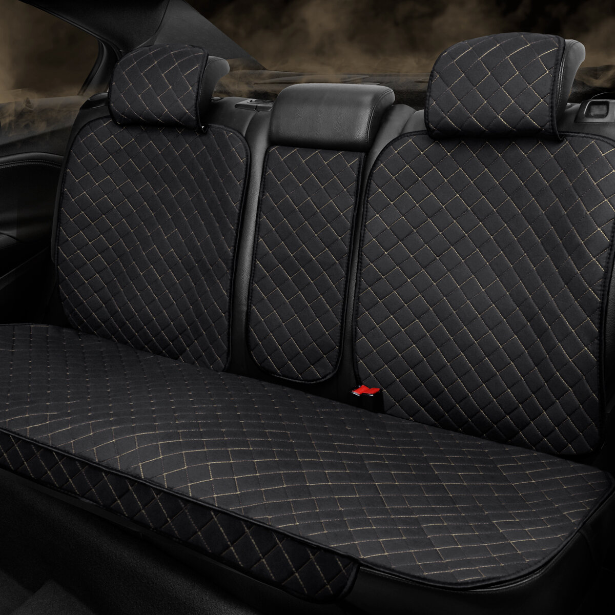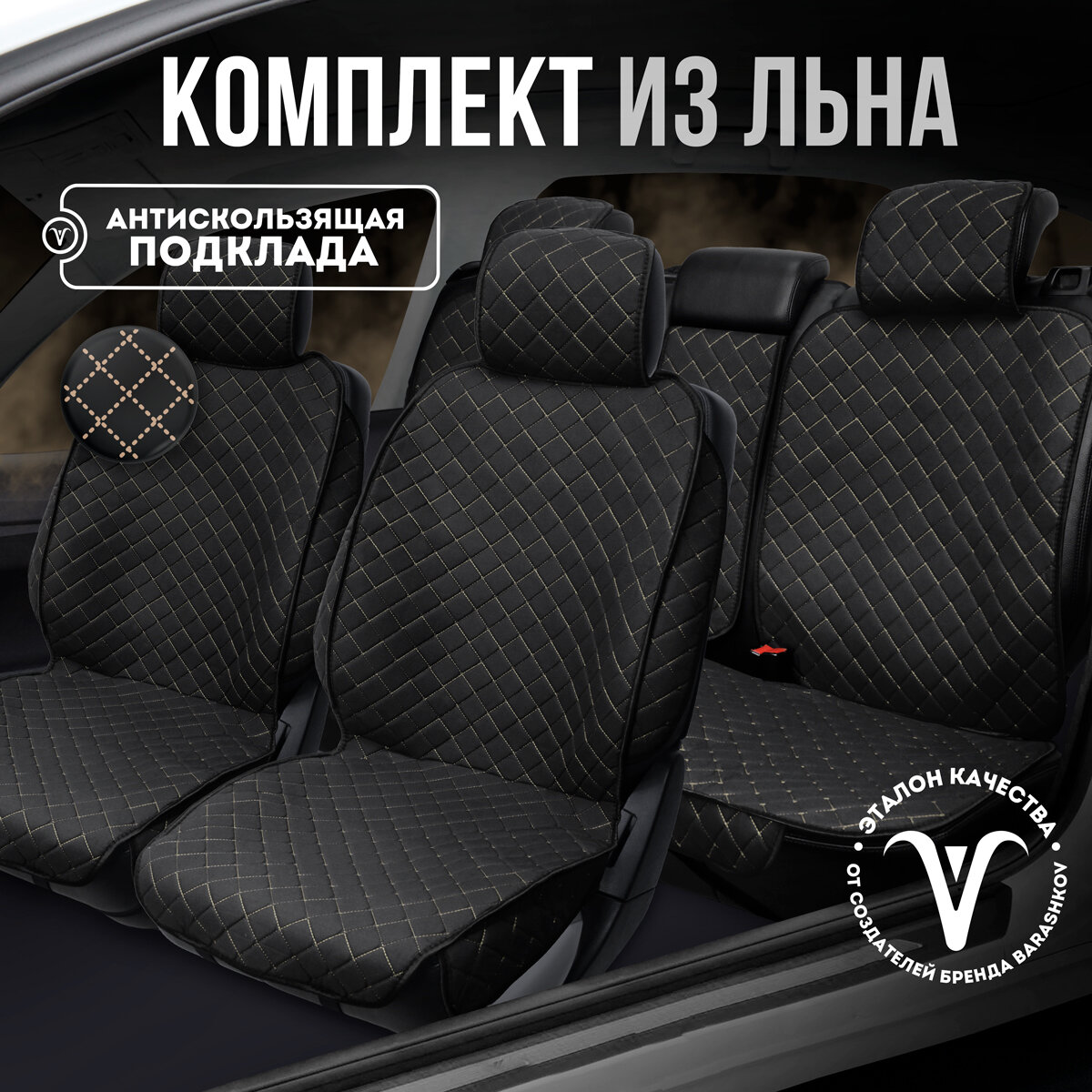 СохранитьCarCape/ Комплект накидок на весь салон. Автомобильные чехлы с боками и юбкой. Лён. Модель AMSTERDAM+PK. Черный, бежевая строчка интересное: