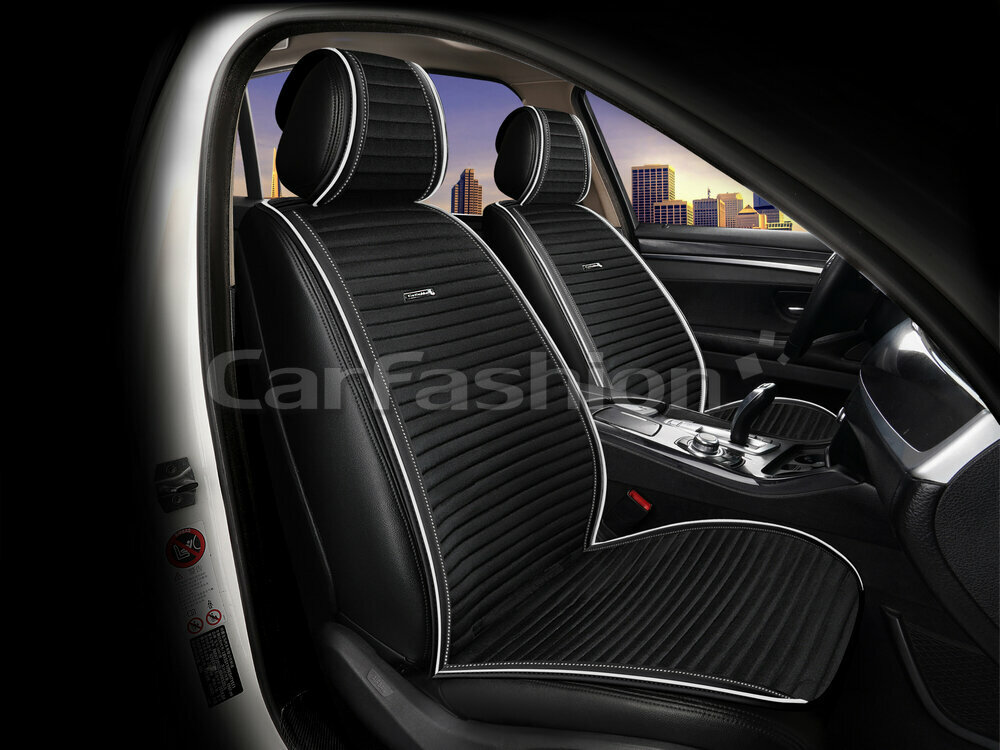 Купить Накидки на передние сиденья CarFashion Monaco PRO, черные, отстрочка белая