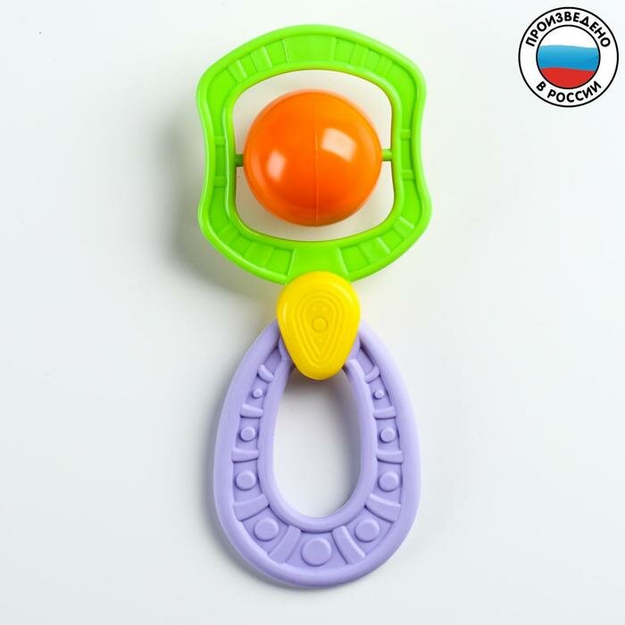 Лёгкая , не очень громкая погремушка и ещё прорезыватель |