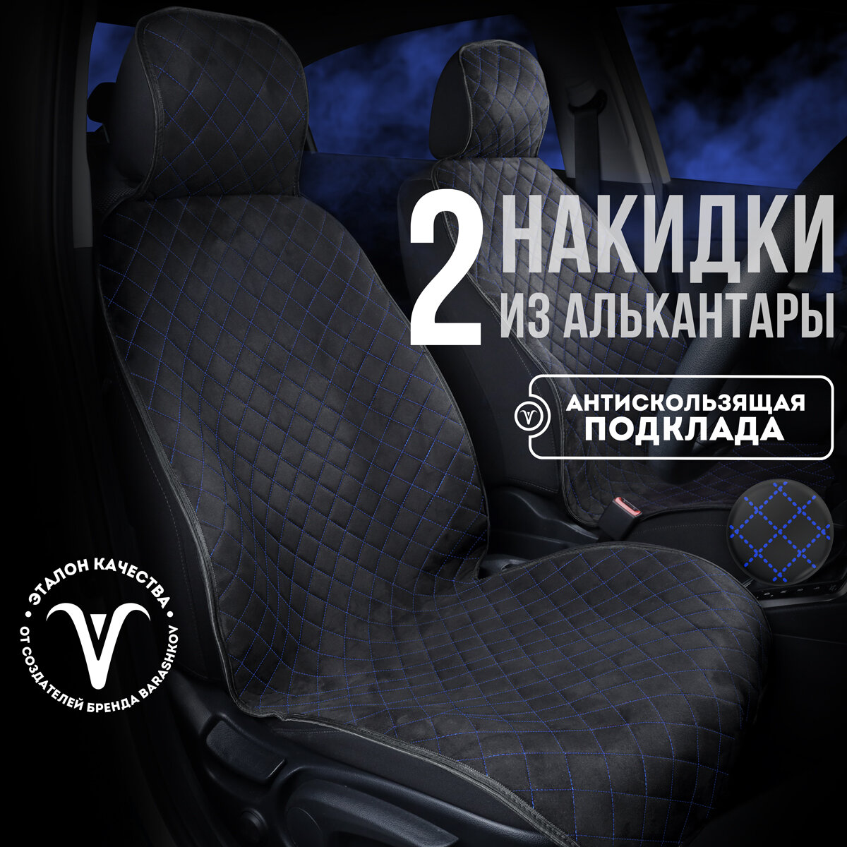 Купить CARCAPE/ Накидки чехлы на сиденье автомобиля из алькантары универсальные накидки на передние сиденья 2шт. Модель SOFIA. Черный, синяя строчка