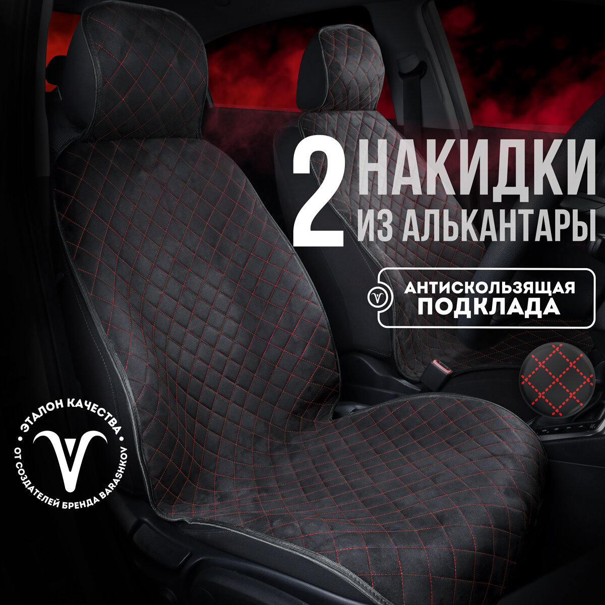 Купить CARCAPE/ Накидки чехлы на сиденье автомобиля из алькантары универсальные накидки на передние сиденья 2шт. Модель SOFIA. Черный, красная строчка