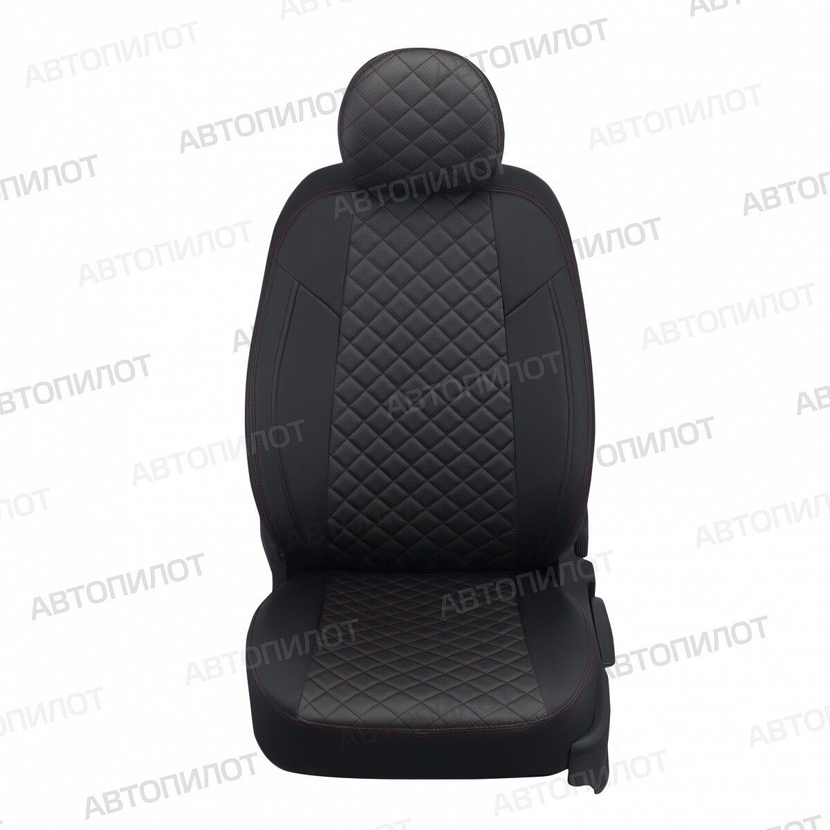 Чехлы Автопилот для LADA Granta Sd/Hb / Datsun on-Do / Kalina II (сплошная). Экокожа, ромб, черный, красная строчка.