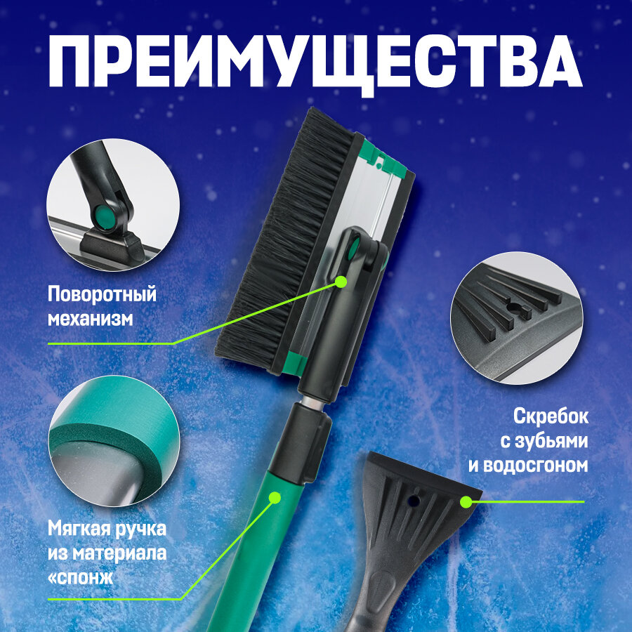 Щетка-сметка для снега со скребком Denzel телескоп, поворотная голова, водосгон, 900-1200 мм 55308