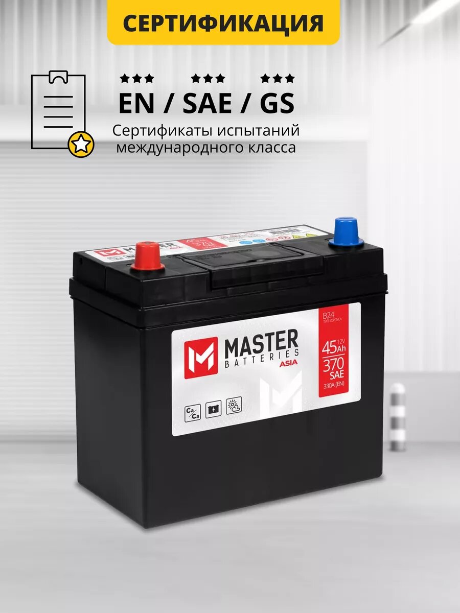 Аккумулятор автомобильный MASTER BATTERIES Asia 45 Ah 330 A прямая полярность 237x127x225 интересное: