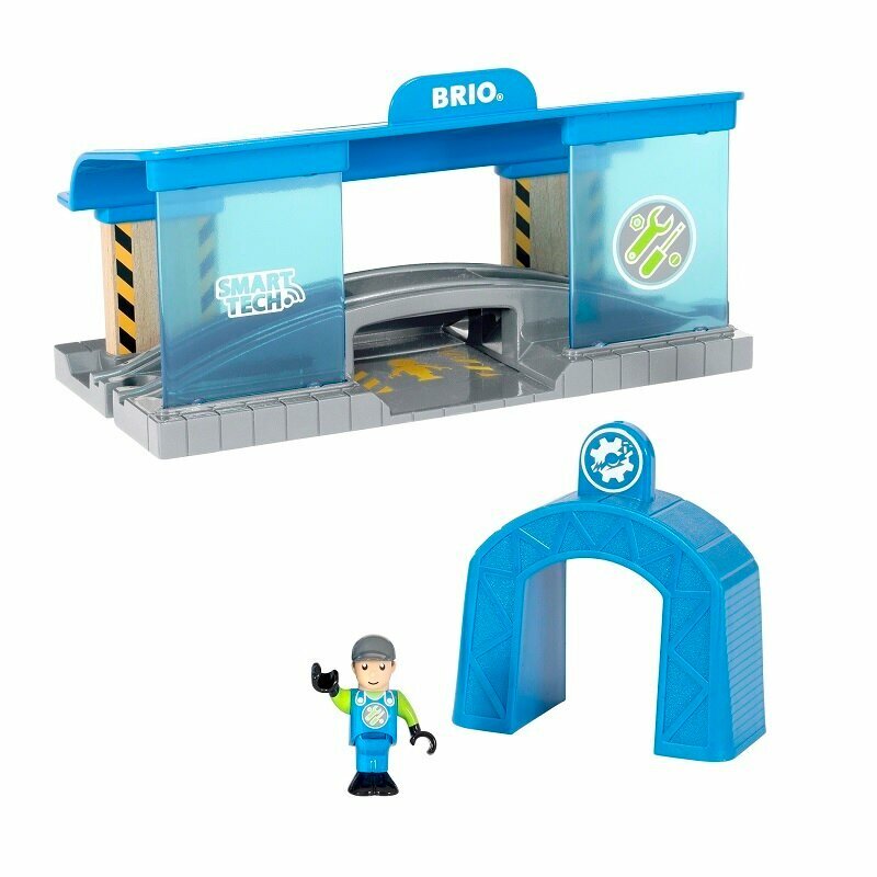 Игровой набор BRIO 33918 Smart Tech Вагоноремонтная мастерская, тоннель 3 элемента