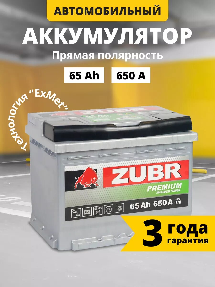 СохранитьАккумулятор автомобильный Zubr Premium 6СТ-65 прям. (низкий) 242x175x175 интересное: