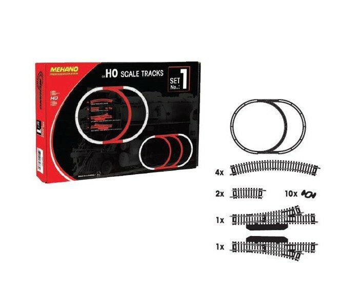 | Дополнительная информация | длину железнодорожного полотна, предлагаемого в стандартном наборе, можно увеличить за счёт других наборов, поскольку все элементы железных дорог «MEHANO» совместимы друг с другом |