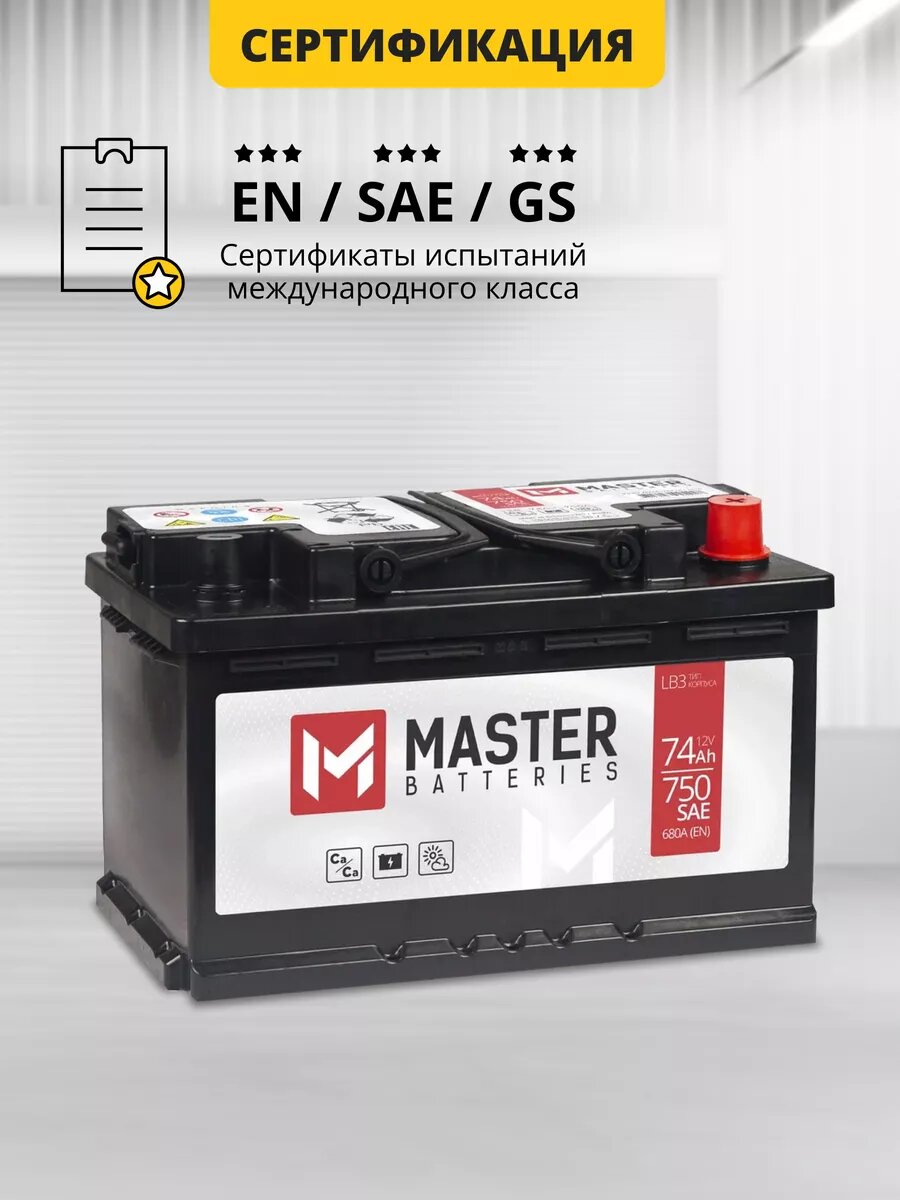 Купить Аккумулятор автомобильный MASTER BATTERIES 74 Ah 680 A обратная полярность 278x175x175