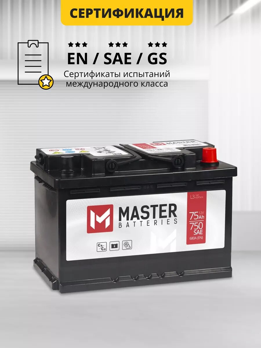 Купить Аккумулятор автомобильный MASTER BATTERIES 75 Ач 680 A обратная полярность 276x175x190 мм