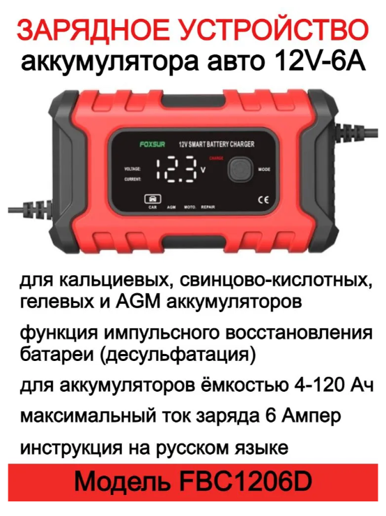 Зарядное устройство FOXSUR 12V-6A для аккумулятора автомобиля интересное:
