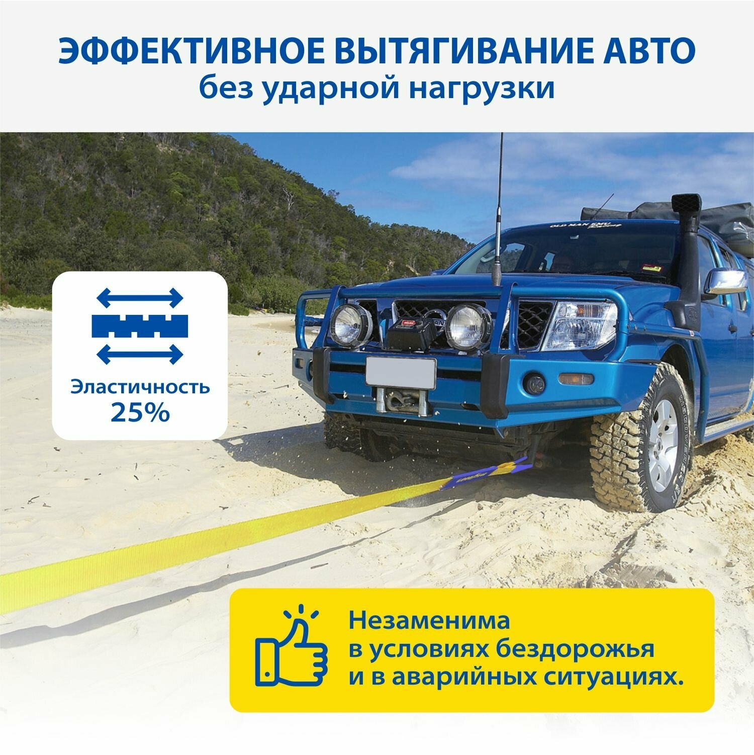 Трос буксировочный лента 5 т, 2 крюка, в блистере (стропа усиленная)