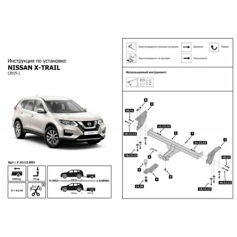 Фаркоп под квадрат Berg для Nissan X-Trail (Ниссан Х-Трейл) T32 2015-2018 2018-н. в, шар E, 1500/75 кг, F.4113.001