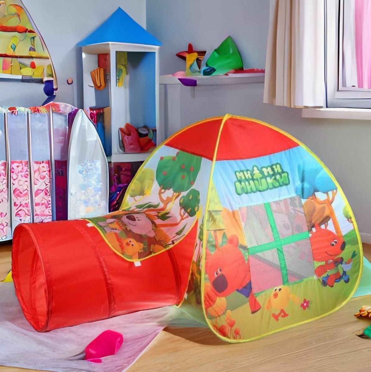 Палатка детская игровая Мимимишки с тоннелем 87X95X95