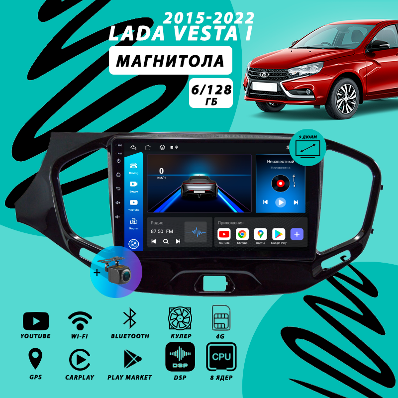 Купить Магнитола Lada Vesta (2015-2022) 6Гб+128Гб Sim/Android/Carplay/8 ядер/DSP/Wi-Fi/Bluetooth/кулер/2din/штатная магнитола