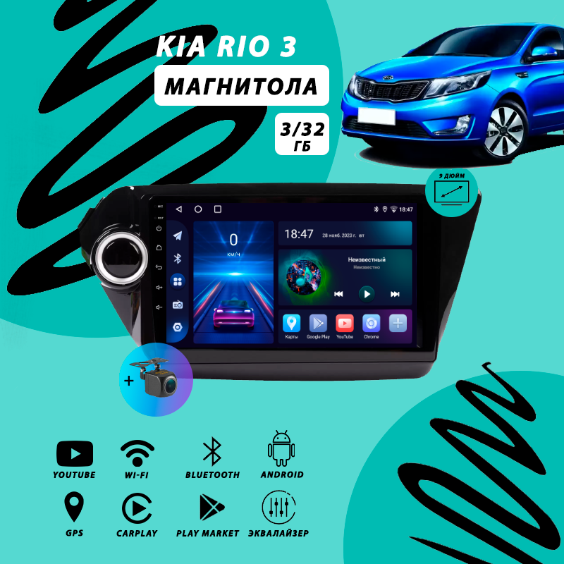 Магнитола Kia Rio 3 (2011-2017) 3Гб+32Гб/Android/Carplay/Wi-Fi/Bluetooth/2din/штатная магнитола интересное:
