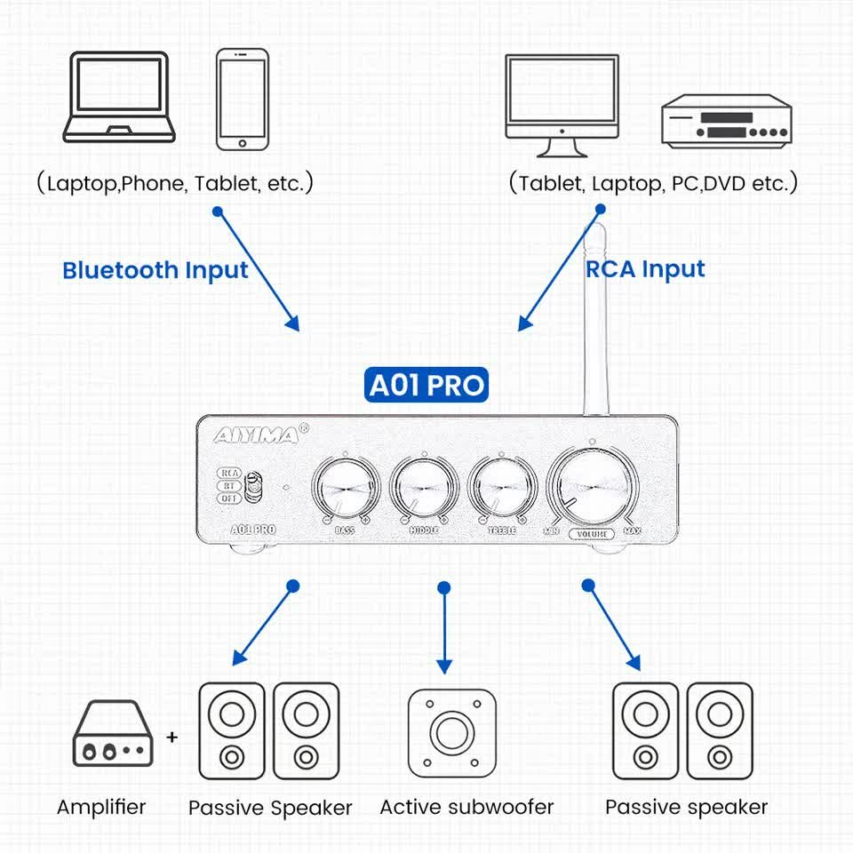 Усилитель Aiyima A01 Pro Bluetooth интересное: