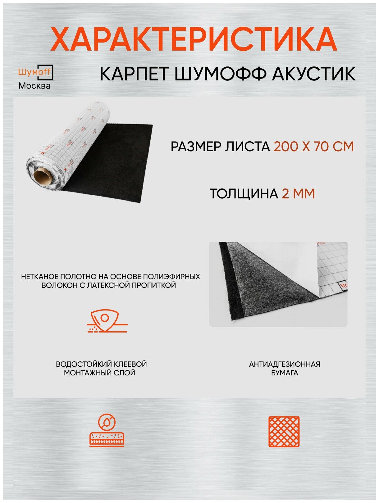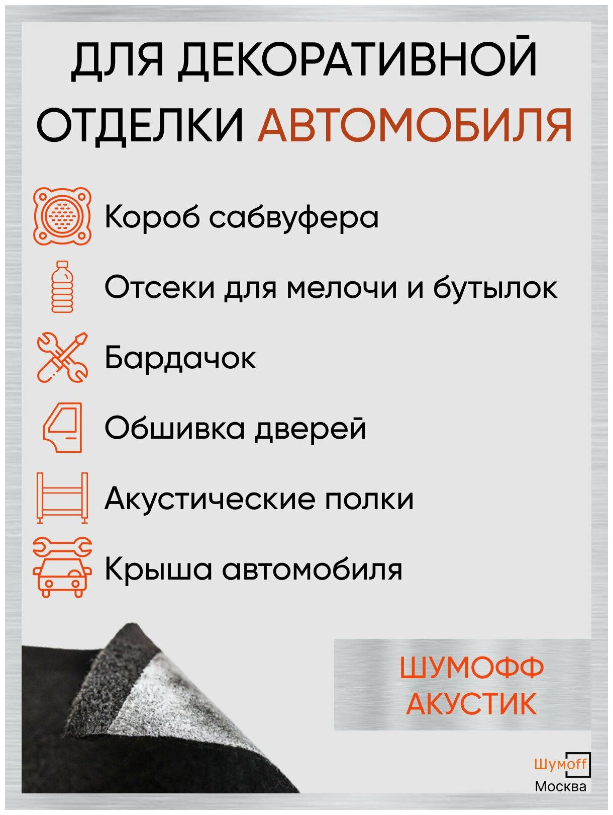 Шумоизоляция автомобильная Карпет самоклеющийся Шумофф Акустик черный 70 см х 2 п. м. звукопоглощение звукоизоляция авто