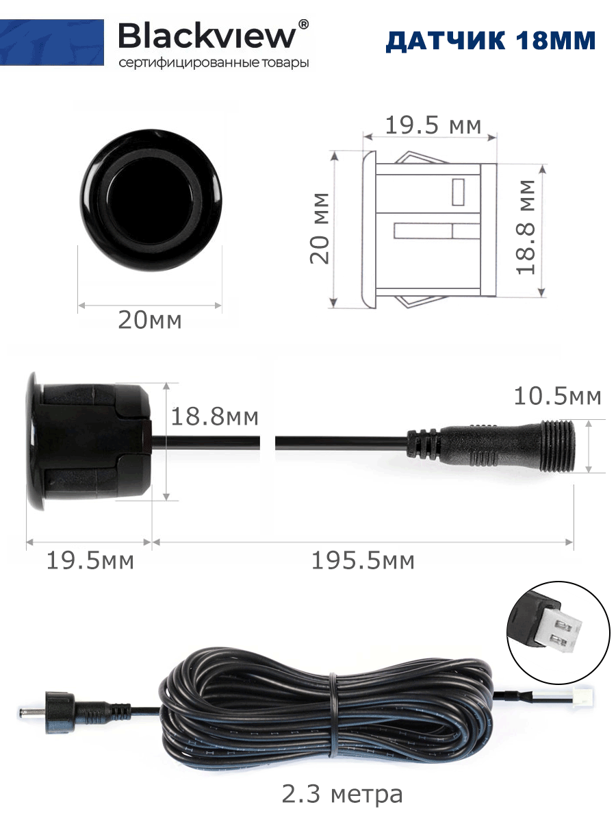 Комплект 2 универсальных датчиков 18 мм парктроника (Разъемный,металл,черный) интересное: