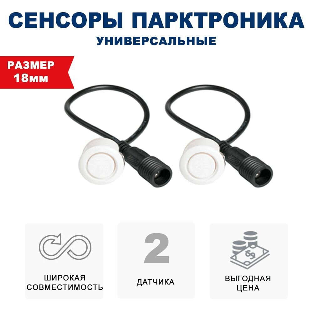 Комплект 2 универсальных датчиков 18 мм парктроника (Разъемный,металл,белый) интересное: