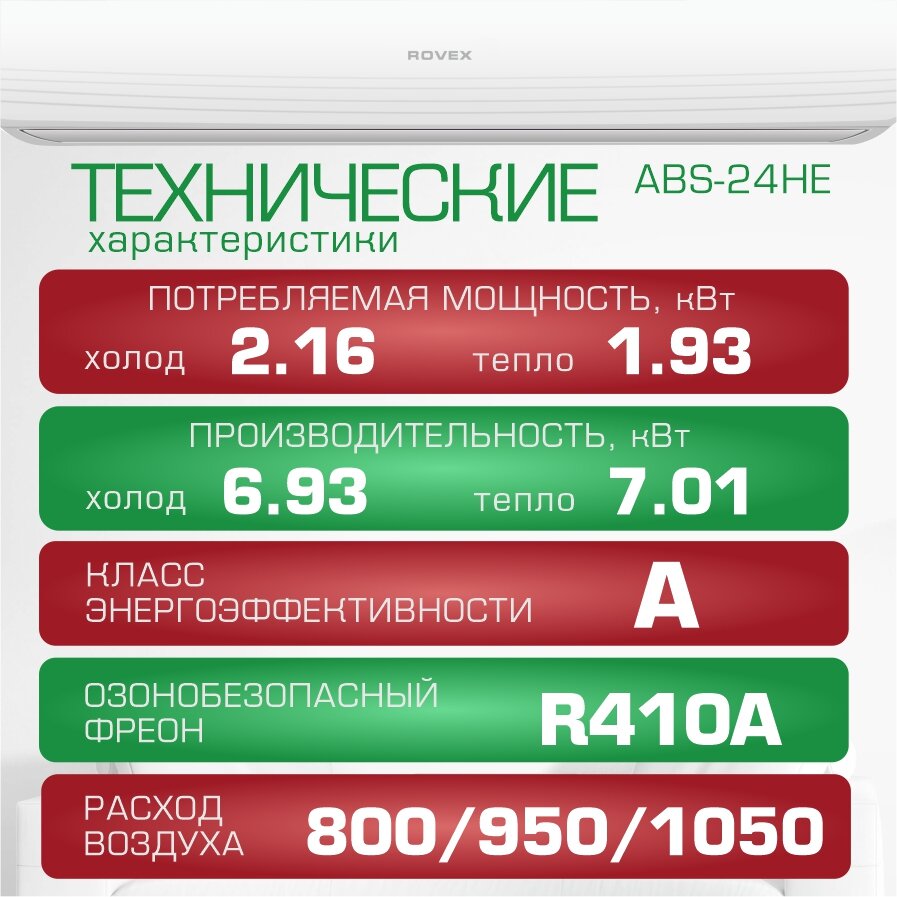 Сплит- система инверторная Rovex Star ABS-24HE настенный кондиционер для большого помещения, 72 м2