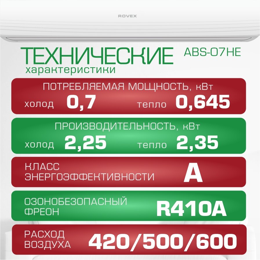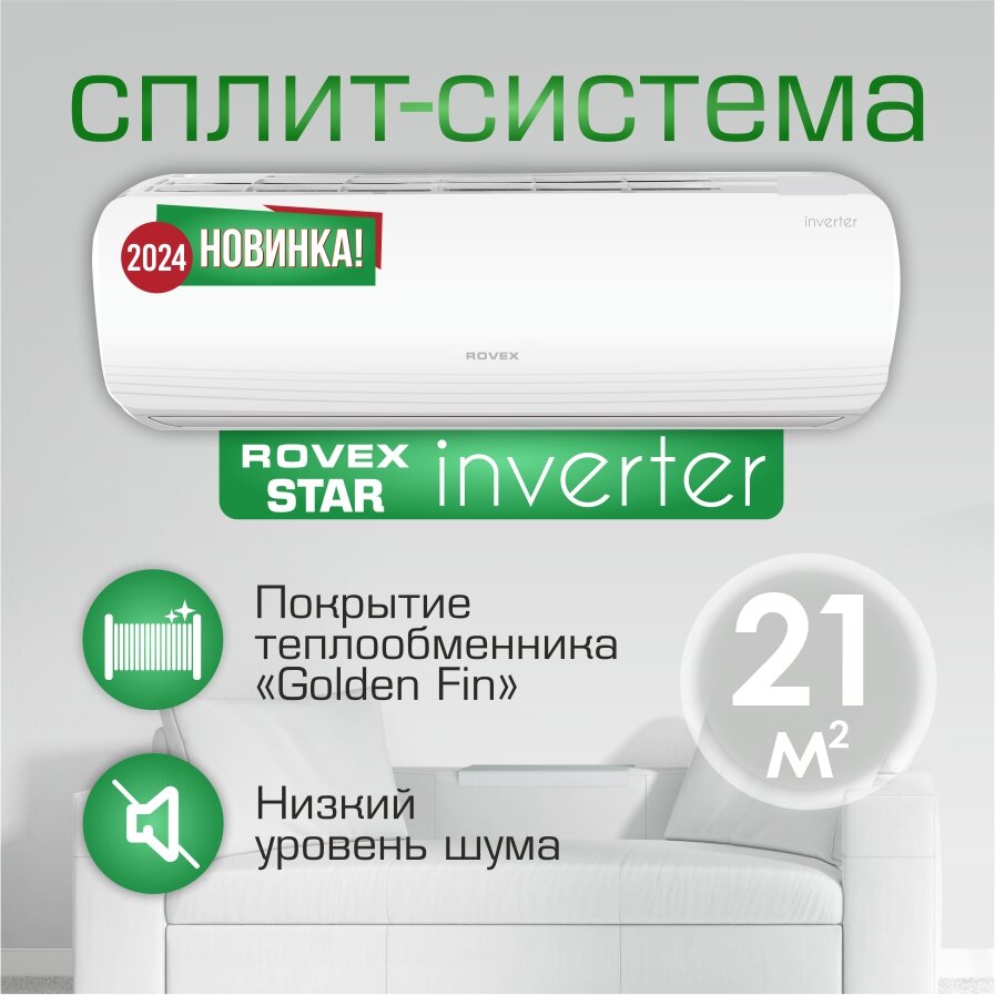 Инверторная сплит-система ROVEX ABS-07 Star N, 21m², 2250/2350 W, белый